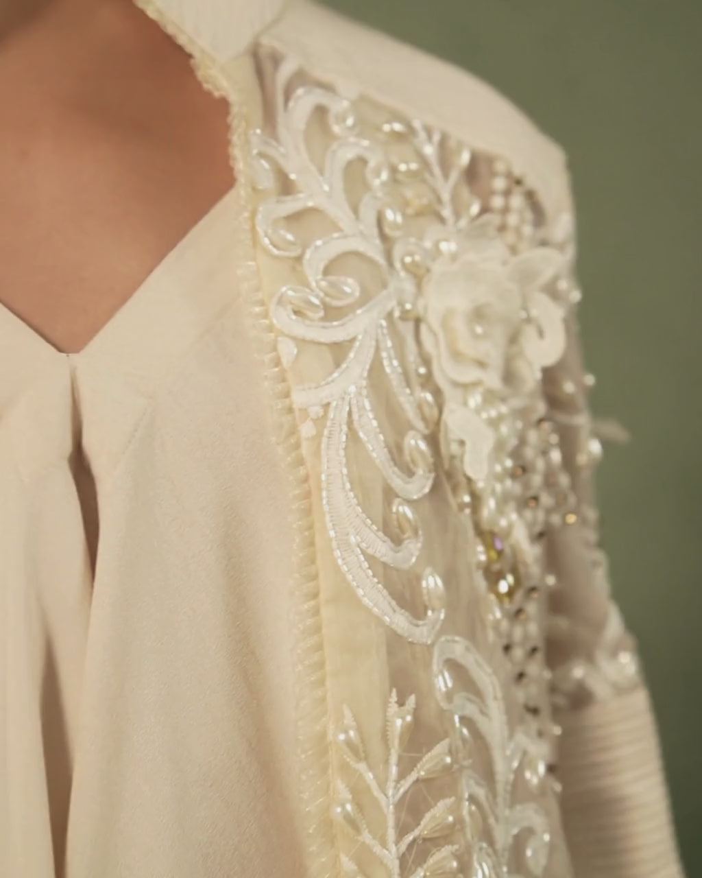 Elevate your occasion wear with this graceful ensemble featuring a sheer organza jacket, adorned with delicate pearls and intricate thread work. Layered over a fluid, flared jumpsuit, it offers a modern silhouette with timeless elegance—perfect for cocktail evenings, festive gatherings, or contemporary celebrations.